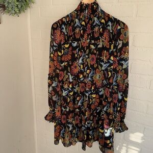 Cinq a sept dress Floral Patterned Long Sleeve smocked mock neck size 2 lined