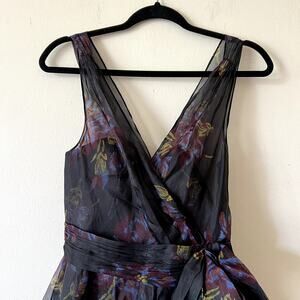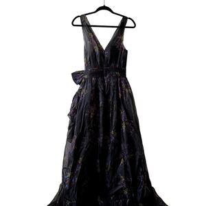 Cinq a sept maxi organza dress Bow size 6 black purple C0