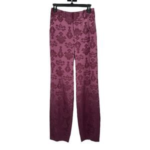 Cinq a sept pants Collins floral jacquard straight leg dark pink size 2 DEFECT F1270