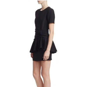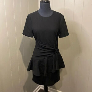 Cinq a Sept Petite Small Black Twist Peplum Cocktail Mini Dress