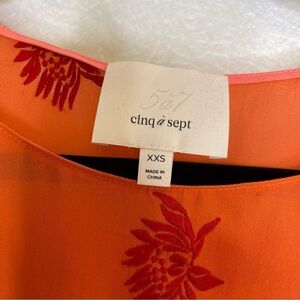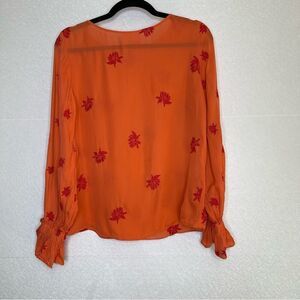 Cinq a Sept Embroidered Silk Floral Blouse Orange XXS