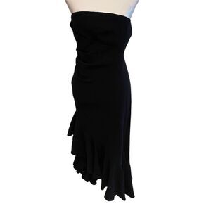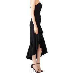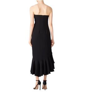 Dance floor-ready, this strapless Cinq à Sept dress features flattering ruching and sweeping ruffles.