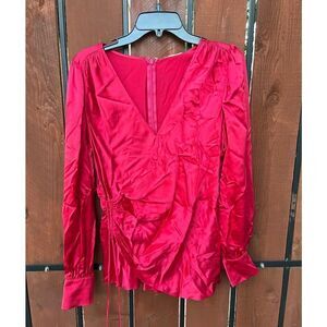 Cinq a sept Dorothea surplice silk blouse raspberry large NWT