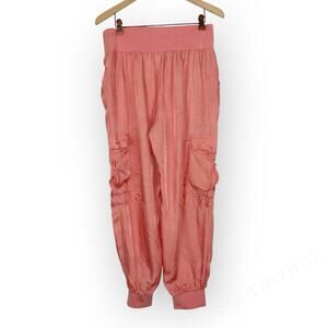 CinqASept Giles Pant Cargo Jogger Cupro PeachyPinkCoralPoppy Crop MidRise