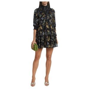 Cinq a Sept Melony Smocked Floral Print Dress Size 6 Ruffle Fairy Designer