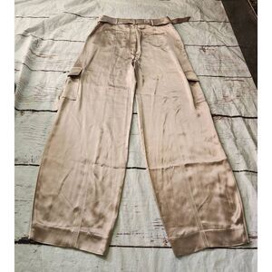 The Jenson Belted Pant by Cinq à Sept, is an elegant addition to your wardrobe in a sophisticated Khaki/Ivory solid color. Crafted from smooth satin, these wide-leg trousers feature a high-rise waist and practical cargo pockets, enhanced by a belted detail for a polished look. Made from 80% Triacetate and 20% Polyester, they come with a zipper fly and hook and eye closure for a comfortable fit.