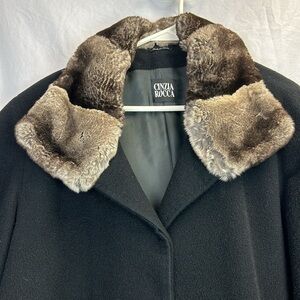 Cinzia Rocca Italian Baby Alpaca Black Winter Coat With Fur Collar