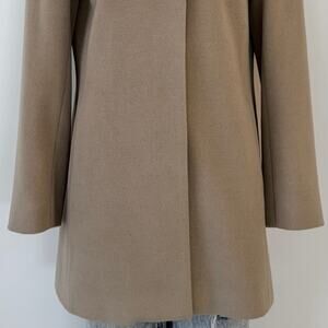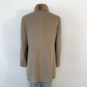 Cinzia Rocca Wool-Blend Coat Fur Trim Collar Button-Up Tan 8