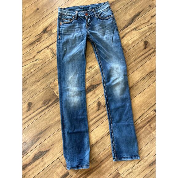Cipo & Baxx size 28 x 34 jeans in nice condition. Waist is 14 1/2” across. Inseam is 34”and rise is 8”.