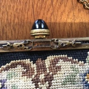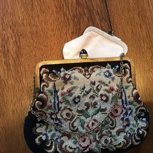 Beautiful little purse from the 1920’s. Measures 6 1/2 at widest point 5” long 3 pockets inside one includes a tiny change purse. Clash works well but missing tiny jewels except for one. This was giving to me by a neighbor in the early 1960’s. She had used it when she was young in the 20’s