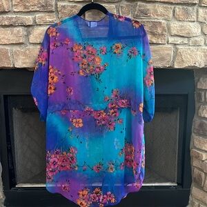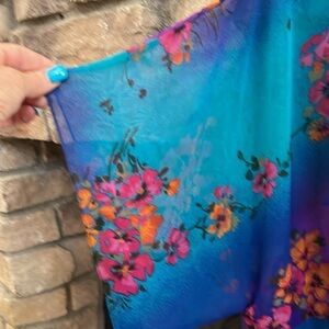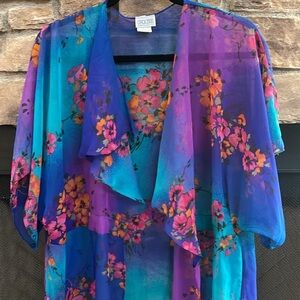 Circa 2000 purple, blue, pink and orange swimsuit coverup. Size large. Approximate measurements are 24 pit to pit and length from shoulder is 35