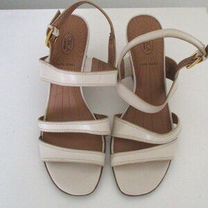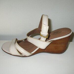 Circa Joan & David "Bethann" Womens Almond Strappy Leather Sandal w/3.25" Wedge Heel. Size 8M. Based upon the pristine soles & heels these don't appear to have ever been worn, however, do to age & storage the underside of the leather straps reveal some deterioration.