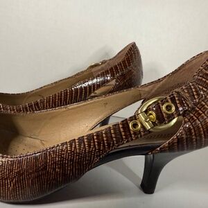 Circa Joan & David Brown Faux Reptile Slingback Kitten Heels 8Wide