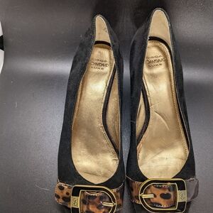 Circa Joan & David Wedge Open Toe Buckle women's 8M Black & Cheetah