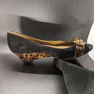 Circa Joan & David Wedge Open Toe Buckle women's 8M Black & Cheetah