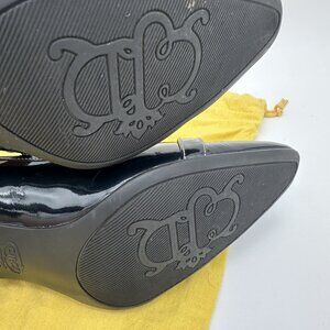 These elegant black patent leather heels from Circa Joan & David offer a professional and sophisticated appearance. Featuring a classic pointed toe and buckle detail, these shoes are designed for comfort and style during work or formal events. With the original dust bag, they are ideal for maintaining their pristine condition.