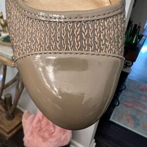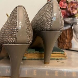 Circa Joan David Luxe Leather Heels Pumps US 10M CJ HESTLEY Taupe Woven Look. From smoke free home. Lovely condition except for the inside from trying to get sticker off. Beautiful classing 3.5”pump.