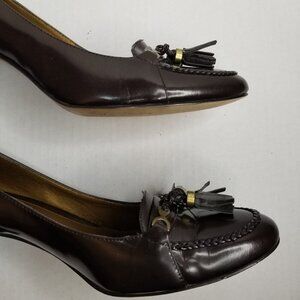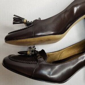 Circa Joan and David Brown Heels Pumps Academia Office Career Tassel Leather Business Professional.