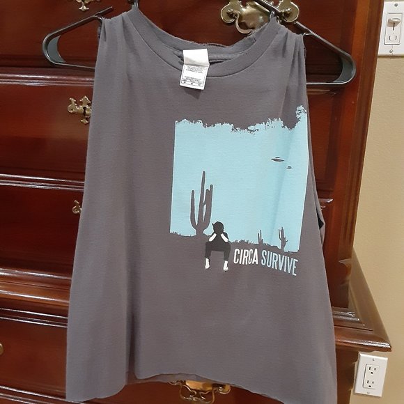 Gray Circa Survive tank. Only wore a few times. Pit17.5 length21 youth med, listing as women's xs.