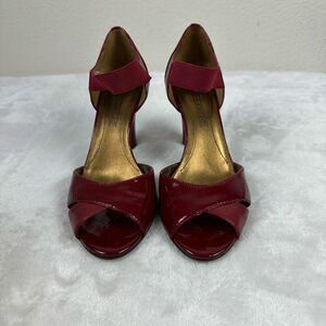 Circa Joan David Womens 6.5 Jamberly Peep Toe Strappy Heel Cranberry Red Patent