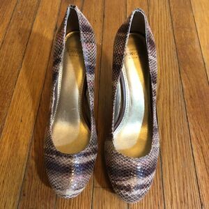 Circa Joan David Shoes Size 7.5 Heels Pearly Snake Skin Print in gently worn condition, almost new