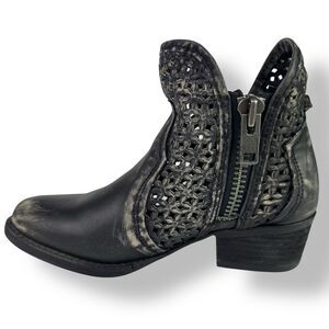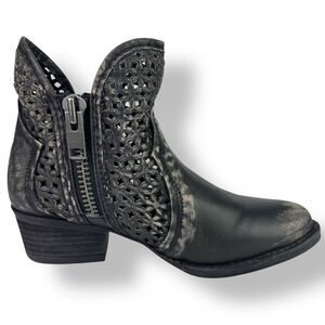 Circle G Black Ankle Booties with Laser-Cut Design