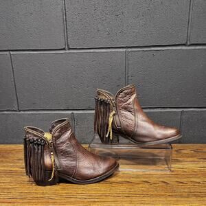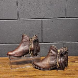 Circle G P5121 Brown Leather Fringe Zip Western Ankle Boots Women’s 6