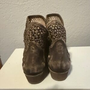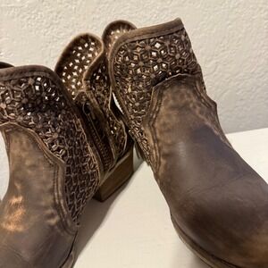 Keywords: Circle G, ankle booties, western boots, leather boots, laser cut, brown boots, distressed leather, boho boots, cowgirl boots, size 9, fashion boots, women's boots, short boots