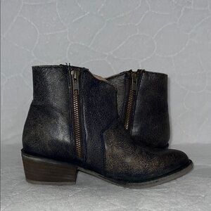 Circle G Women’s Brown and Blue Ankle Boots with Western Flair Stacked Heel SZ 6