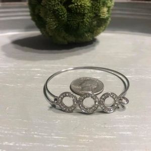 Silver bangle bracelet. Picture to show how it opens. Used once for an event. No rhinestones missing.