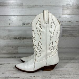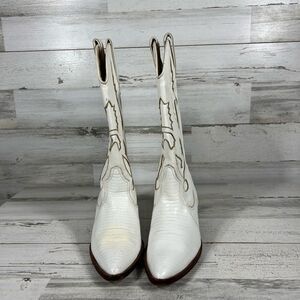 Circle S Women's Western Pointed Toe Leather White Boots Pull On Style Size 9