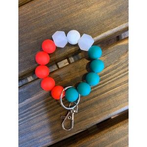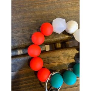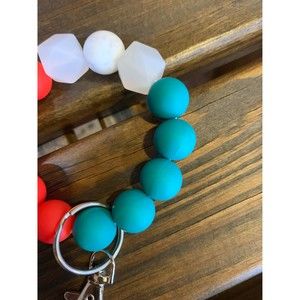Circle Silicone Bead 15mm Wristlet Keychain Key Holder Colorful Turquoise Pink