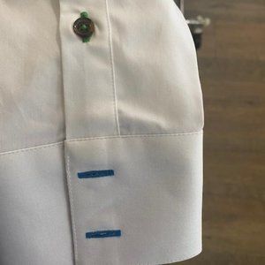 Circle of Gentlemen Mens White collared long sleeve button down dress shirt with blue & green stitching