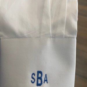 16 1/2 - 42 Hints of Blue & Green in stitching - small stain on collar, Monogrammed on sleeve - sBa