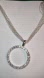 Silver Plated 6-strand chain necklace with pendant of white crystals in an open circle pattern. Sturdy stainless steel bail fits loosely on the strand of chains, allowing for movement.
