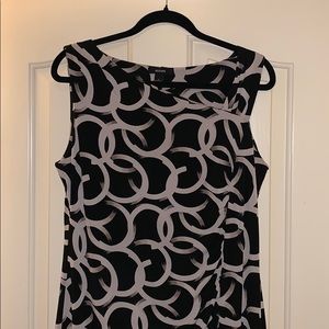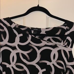 This dress has a a retro 20’s feel. The knee length cut makes it great for business or fun. The asymmetrical neckline is fun too!