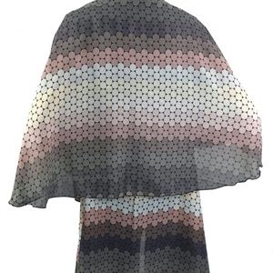Lightweight, colorful, is a vest cut in a circle pattern with low arm holes so the back falls like a cape.