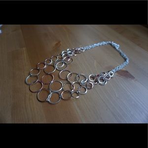 Really pretty circles statement necklace with silver, rose gold, and gold colored circles.