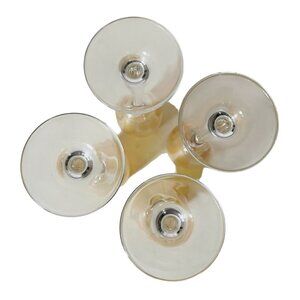 Set of 4 vintage MCM stemmed glasses with gold rims and a thin gold ring below the band. They stand about 6.25" and have a 3 oz capacity. These Delicate glasses are in excellent condition with no cracks, chips or fleabites.