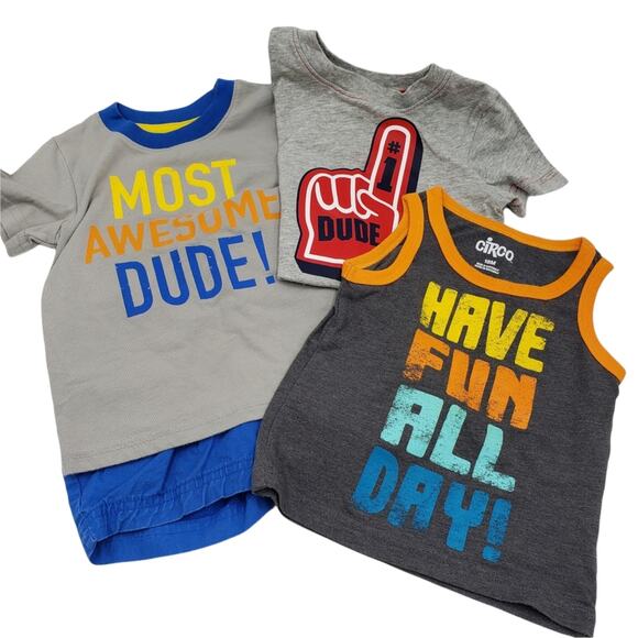 Circo Graphic Print Tees Tank Shorts Bundle Gray Blue Size 18 Months