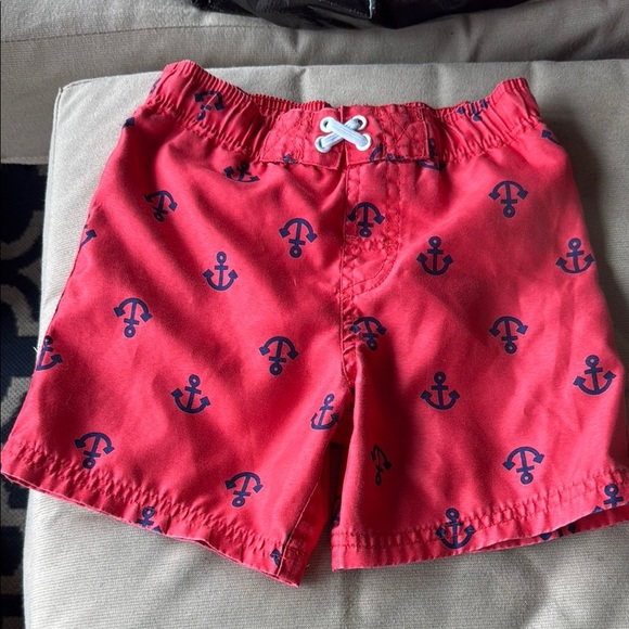 Circo Anchor Print Kids Swim Trunks - Red with blue, 3T, preowned