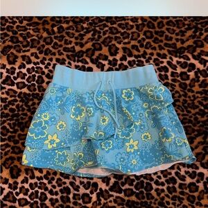 Vibrant blue mini skirt by Circo. Features a lively floral pattern with yellow accents. Perfect for a fun, casual look.