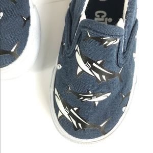 Fun navy shark print boys slip ons. Like new condition, only worn one or two times.