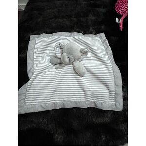 Circo used Gray plush Elephant baby Security Blanket white stripes satin lovey
