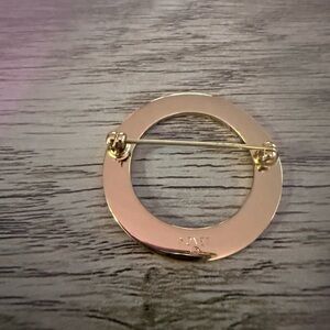 This gold tone circular brooch adds a touch of sophistication to any occasion.