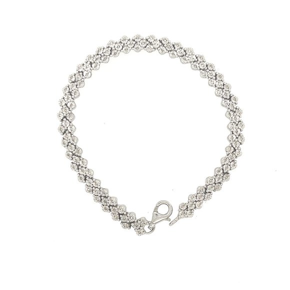 Circular Pattern Bracelet 925 Sterling Silver with Small Diamonds