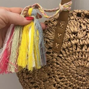 Circular Straw Bag Paper Tassels Summer Vacation Beach Pool