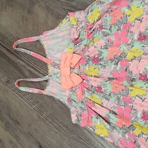 Absolutely Gorgeous 5T Flower Spaghetti Strap Dress with Bow in Back. Two marks on dress but very difficult to see with pattern.