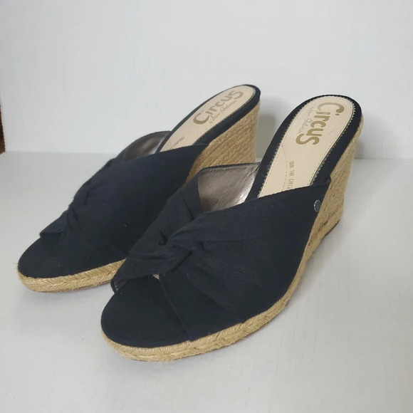 Circus By Sam Edelman Bea Wedge Espadrilles Size 9 Black Canvas Slip On Sandals