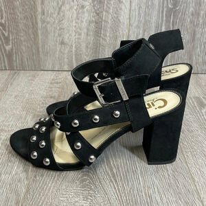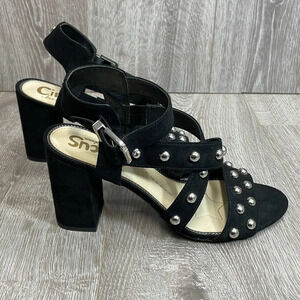 Circus By Sam Edelman Black Ophelia Faux Suede Strappy Studded Heel Sandals 8.5M